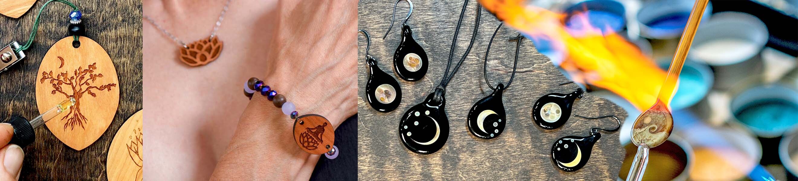 Shop USA-made gift ideas like our Wood Diffuser Earrings and TZ Glass Jewelry: