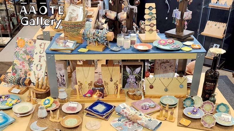 We feature gifts, jewelry, home decor, wall art, pottery, books, puzzles, greeting cards, and apparel with a heavy focus on domestically sourced goods, and artisan handcrafted. With works from 90+ artists and makers, each piece has a story! Visit us to shop a wide selection of our own AAOTE Aromatherapy and Gemstone Jewelry and Ornaments, and TZ Glass by Tari Zarka.